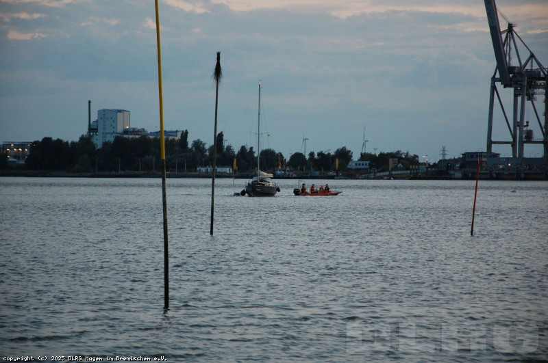 Mehr erfahrenAm Samstag den 05.07.2025 haben wir 98 Schwimmerinnen und Schwimmer auf einer etwa 2.000 Meter langen Strecke durch die gezeitenbeeinflusste Unterweser begleitet. Die Strecke verlief außerhalb des Fahrwassers entlang des rechten Weserufers zwischen Sandstedt und Rechtenfleth. Der Start erfolgte vom Sandstrand in Sandstedt – bei langsam einsetzender Ebbe. Die Absicherung der Schwimmstrecke wurde von uns, der DLRG-Ortsgruppe Hagen im Bremischen e.V., organisiert und durchgeführt. Mit 20 Einsatzkräften, 6 Booten aus den Ortsgruppen Hagen, Osterholz-Scharmbeck und Schwanewede, einem Aufklärungstrupp mit Drohne sowie zwei Board-Fahrern sorgten wir für die Sicherheit aller Teilnehmenden. Alle Schwimmerinnen und Schwimmer kamen sicher und ohne Vorkommnisse am Ziel an. Wir bedanken ...